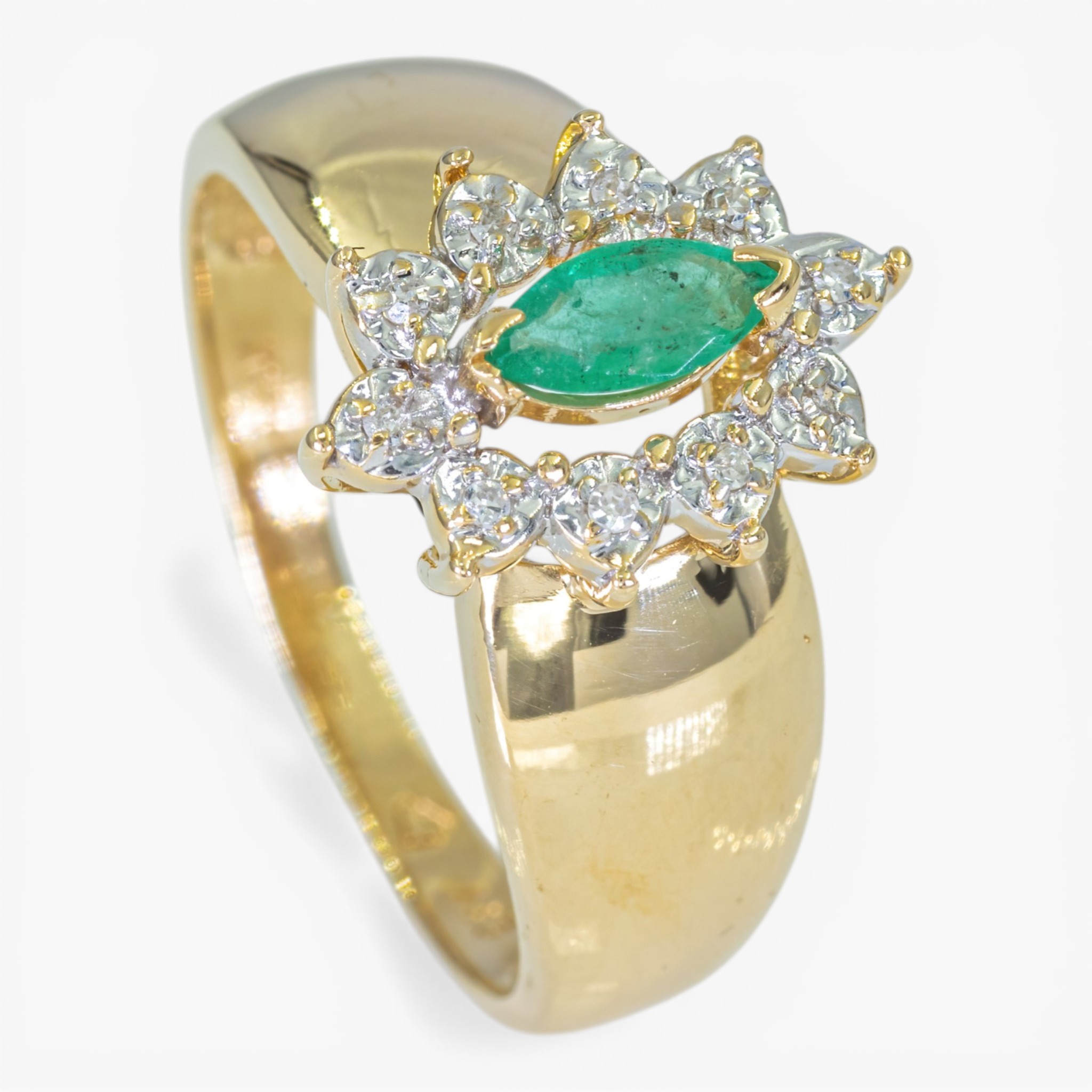Anillo de oro de 14k con rubíes de 0,48 ct y diamantes de 0,32 ct VS-SI E-F, con diseño ondulado y sofisticado. Pesa 2,32 gramos y es talla: 11-12